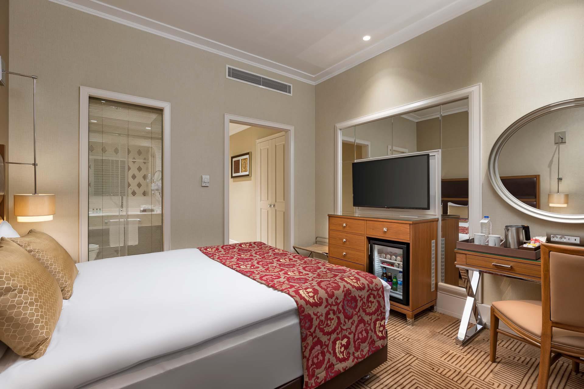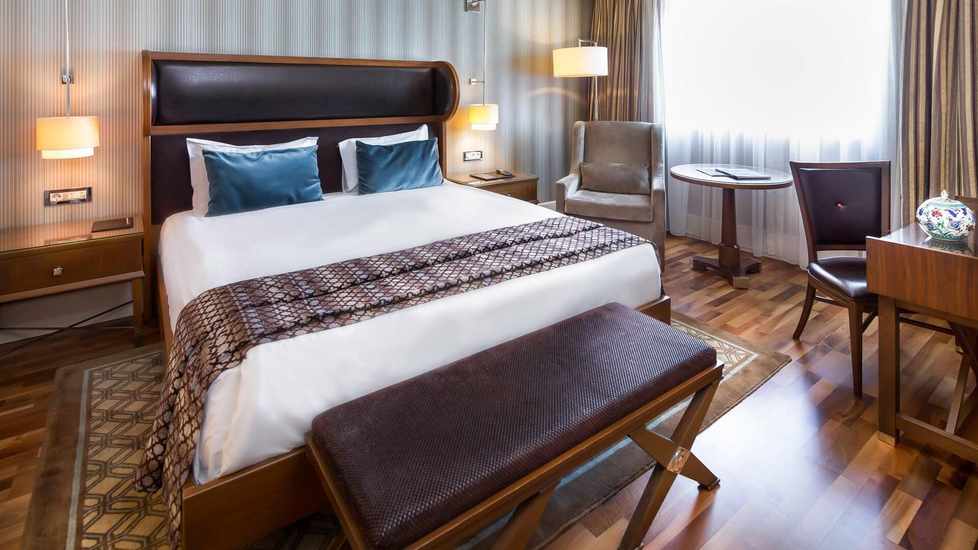 The 36-38 m2 deluxe rooms with city views are on the 9th and 10th floors of the hotel and offer a spacious and comfortable accommodation alternative at the center of Istanbul.